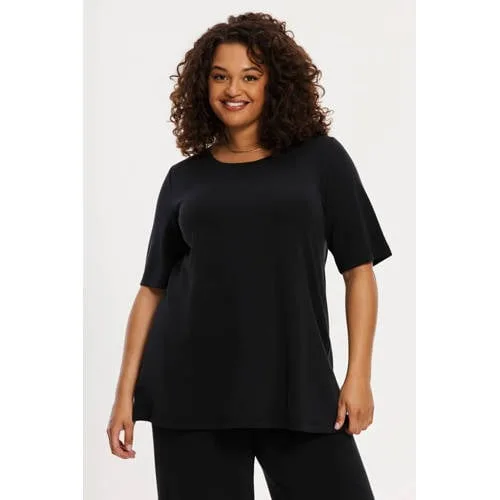 Let's lounge! This soft, elegant tunic crafted from a smooth modal-blend with gentle stretch will be the perfect base. The washed black shade gives it a modern look, while the flare fit ensures comfort. Finished with short sleeves and part of our luxurious lounge drop—perfect for elevated everyday wear.