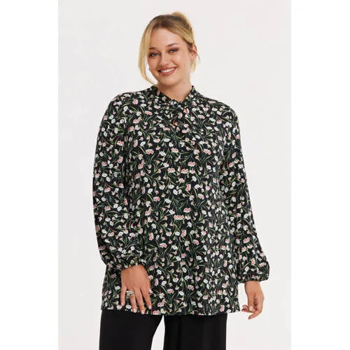 Deze tuniek van YOEK heeft rechte mouwen en een klassieke kraag. De knoopsluiting maakt aan en uit trekken makkelijk. Gemaakt van polyester, afgewerkt met een all over print.