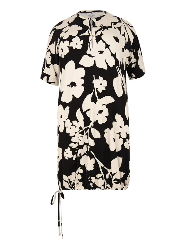 Design: Keyholesluiting; Type sluiting: Knoopsluiting; Materiaal: Viscose; Motief: Bloemenprint; Kraag: Tuniek kraag; Extra's: Trekkoord in de boord, All-over patroon; Pasvorm: Losse pasvorm; Armlengte: Kwartmouw; Lengte: Lange pasvorm