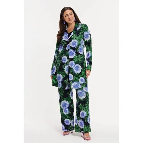 Val op in elke setting met deze YOEK damesbroek met bloemenprint. De lange, wijde pijpen vallen soepel langs het been en creëren een elegante look die tegelijk heel ontspannen aanvoelt. De blauw, groen en zwart gekleurde bloemenprint geeft je outfit direct karakter, terwijl de hoge taille zorgt voor een mooie, vrouwelijke lijn.Comfort en details in één broek Wijde pijpen voor een luchtige, vloeiende uitstraling Gemaakt van 95% polyester en vijf procent elastaan voor een stretchy, soepele fit Elastische tailleband voor makkelijk aan- en uittrekken en extra draaggemak Hoge taille die comfortabel aansluit en een gestroomlijnd silhouet geeft Met sierzakken en zakken voor een nette, verzorgde look Bloemenprint in lila-, groen- en blauwtinten voor een verfijnde printmixVan statement look tot alledaags favorietDeze broek leent zich goed voor zowel een opvallende co-ord set als een meer ingetogen combinatie. Draag de broek met de bijpassende blazer of tuniek voor een statement outfit, of combineer met een effen top in zwart, blauw of lila voor een rustige, toch opvallende dagelijkse look.YOEK: stijl met aandacht voor pasvormYOEK staat bekend om modieuze kleding met een comfortabele pasvorm. De ontwerpen zijn gemaakt met oog voor vrouwelijke vormen en gebruiksgemak, zodat je je de hele dag vrij kunt bewegen en er tegelijk verzorgd uitziet.Een veelzijdige broek die gemak en uitstraling moeiteloos samenbrengt.