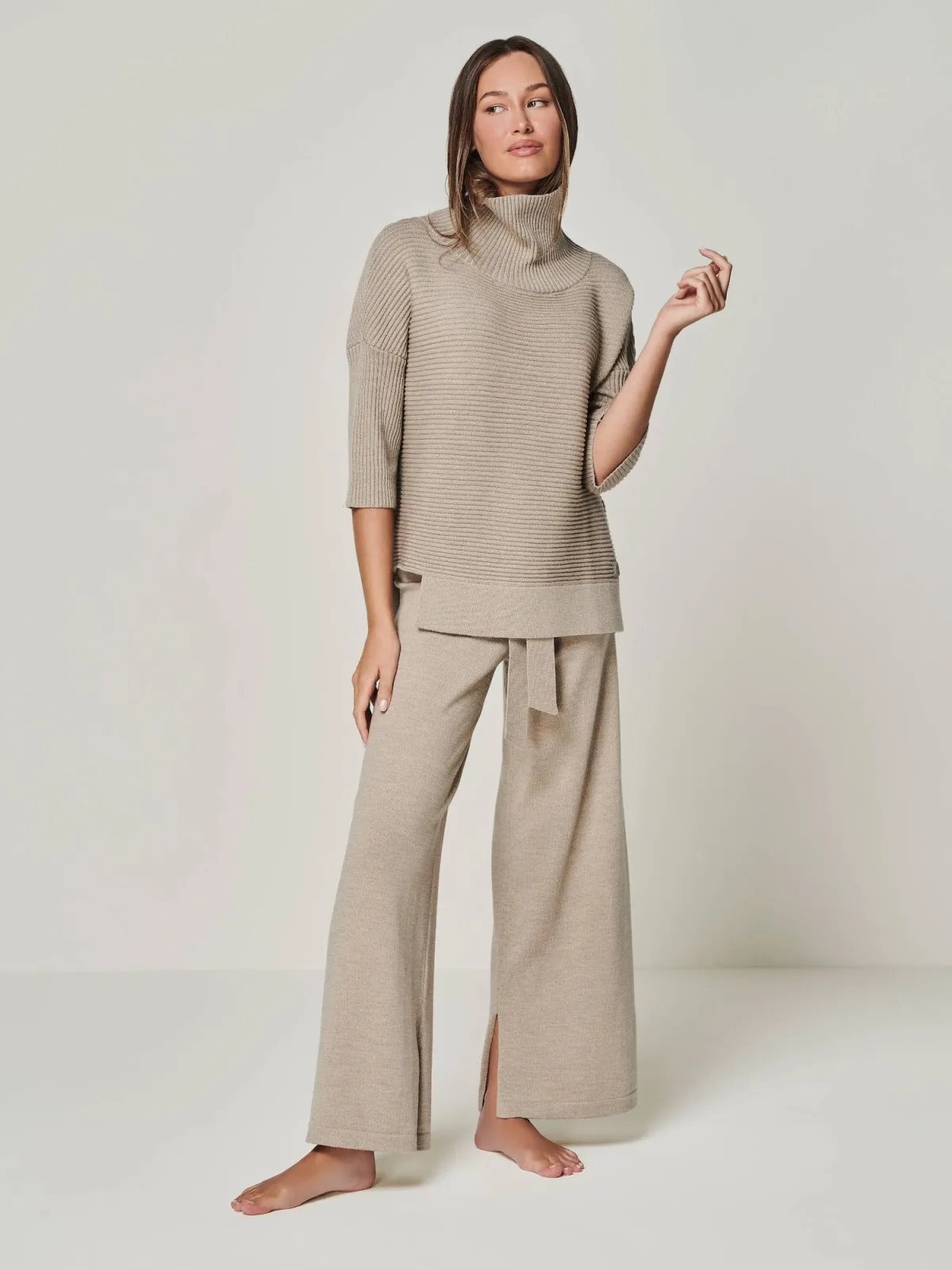 YOU LOOK PERFECT Huispak ‘LOUNGEWEAR SET – Pullover Bailey & Pants Bailey’ taupe