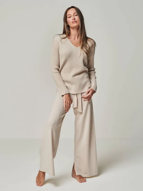YOU LOOK PERFECT Huispak ‘LOUNGEWEAR SET – Pullover Blossom & Pants Bailey’ beige
