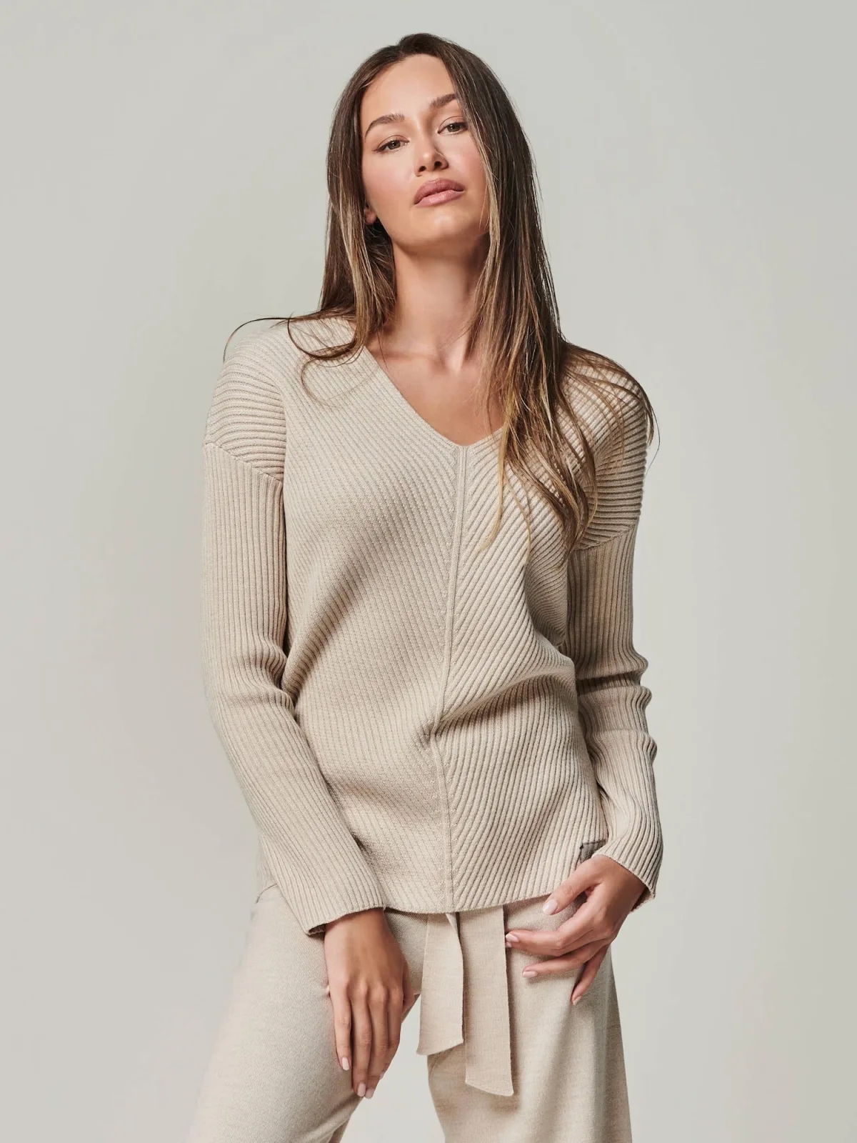 Materiaal: Knitwear; Halstype: V-hals; Motief: Effen; Pasvorm: Losse pasvorm; Armlengte: Lange mouw; Lengte: Normale lengte