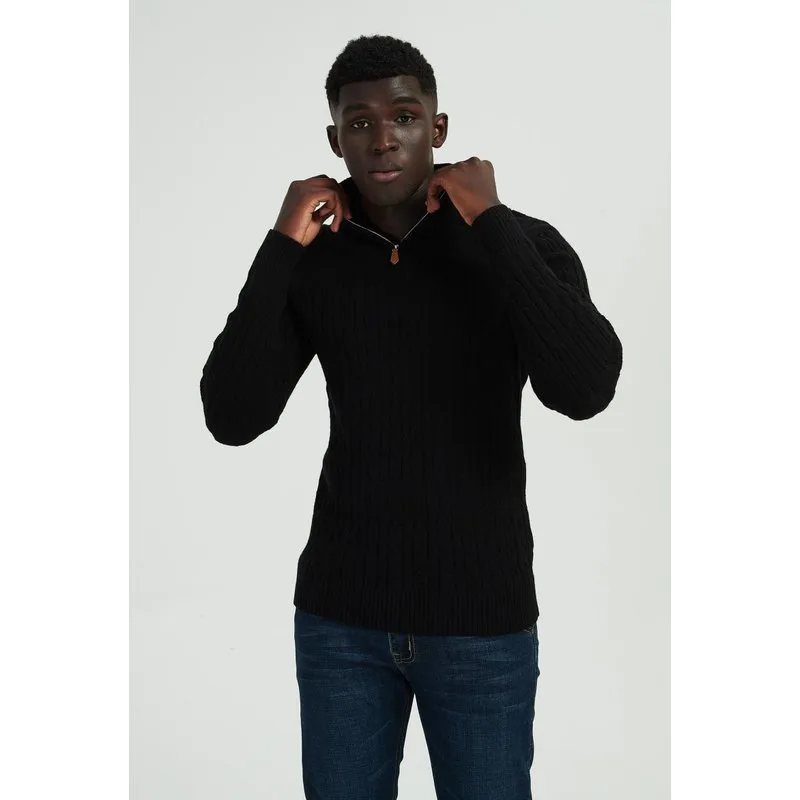 - Bij bol.com kun je Yves Enzo - Heren Kabeltrui - Zwart - Kraag - Rits kopen voor slechts €24,95