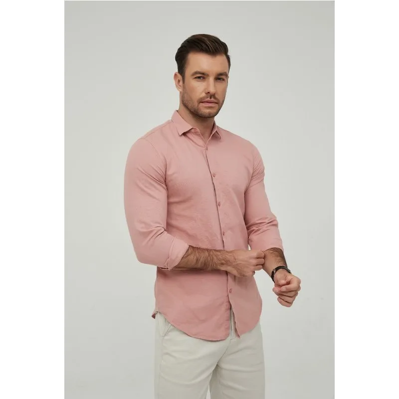 Overhemd heren lange mouw | Moda Italia | Yves Enzo Heren overhemd met lange mouw van het Italia Mode merk Yves Enzo. De heren blouse is gemaakt van linnen stoffen. Dit geeft een comfortabel draaggevoel. De linnen blouse met lange mouw past goed op je outfit in combinatie met een chino of een pantalon. Samenstelling: 100% Linnen Kleur: Licht Roze Pasvorm: Normal Fit