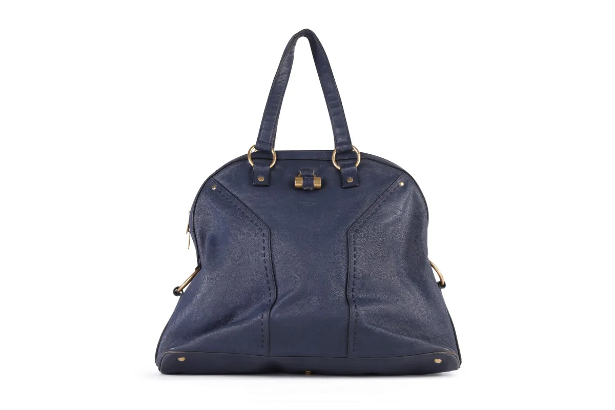 Yves Saint Laurent Navy Blauw Leren Oversized Muse Tas