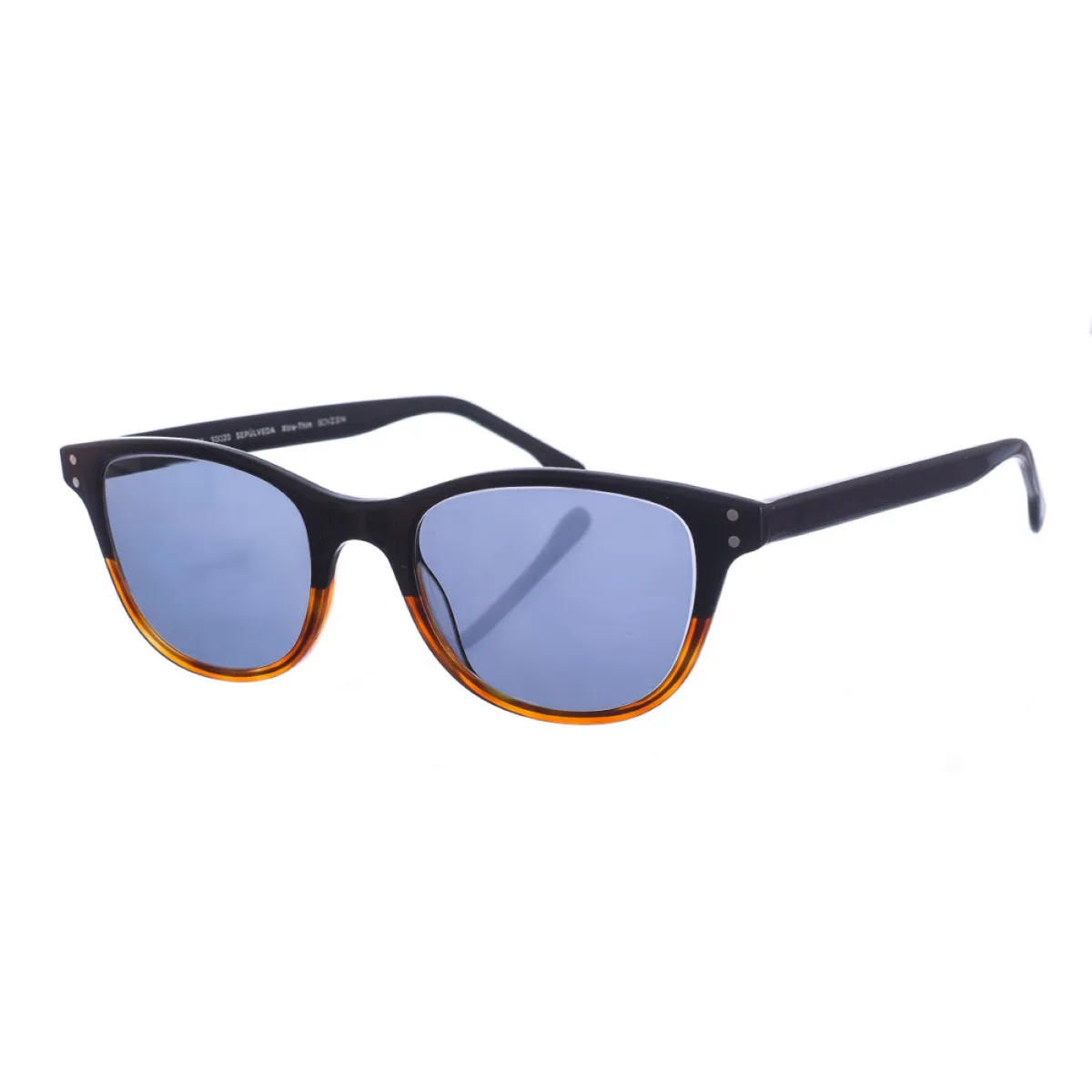 Sepulveda zonnebril. Zen zonnebril met acetaat montuur. Vierkante vorm. Acetaat veren. 100% UV-bescherming. Inclusief een neutrale stoffen hoes. Afmetingen: Hoogte lens: 47 mm Breedte lens: 50 mm. Brug: 20 mm. Poten: 145 mm. Samenstelling: Acetaat Onderhoud: Reiniging en onderhoud: -Reinig de glazen met water en zeep (neutraal). - Gebruik geen vuile of schurende doekjes, die kunnen de eigenschappen van de filters veranderen. - Gebruik alleen originele accessoires en reserveonderdelen.