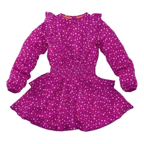 De Z8 meisjes jurk Megan is een praktische keuze voor de kledingkast van je dochter. De jurk heeft een bloemenprint in een diepe violette kleur en valt kort, waardoor hij geschikt is voor elke dag. De lange mouwen en ronde hals geven een comfortabele, gesloten pasvorm die ook op koelere dagen prettig is om te dragen. Door de fijne, soepel vallende stof met lichte stretch beweegt je kind makkelijk mee in alle dagelijkse avonturen.Vlotte details voor elke dag Diep violette kleur met all-over bloemenprint, waardoor de print duidelijk naar voren komt Lange rechte mouwen en ronde hals voor prettig draagcomfort Ruches en smockwerk zorgen voor een speels, verfijnd effect Knoopsluiting maakt aan- en uittrekken eenvoudig, ook voor kinderen zelf Korte jurk, fijn voor school, spelen of een dagje weg Zachte, soepele stof met een beetje stretch voor extra bewegingsvrijheid Onderhoudsvriendelijk: wasbaar op 30 graden, niet strijken en niet in de droogtrommelComfortabel in drukke kinderagenda'sDeze Megan jurk uit de 'Daily' collectie is ontworpen voor alledaags gebruik. Past goed bij leggings of maillots en sneakers, zodat je kind zich vrij voelt tijdens spelen, sporten op het schoolplein of een feestje na school.Z8 kids, speels en betrouwbaarZ8 kids staat bekend om moderne kinderkleding met praktische details. De ontwerpen sluiten aan bij het actieve leven van kinderen, met aandacht voor comfort, pasvorm en mooie kleuren die na veel wassen nog steeds fris ogen.Een jurk waarin je kind zich de hele dag prettig en vrij kan bewegen.