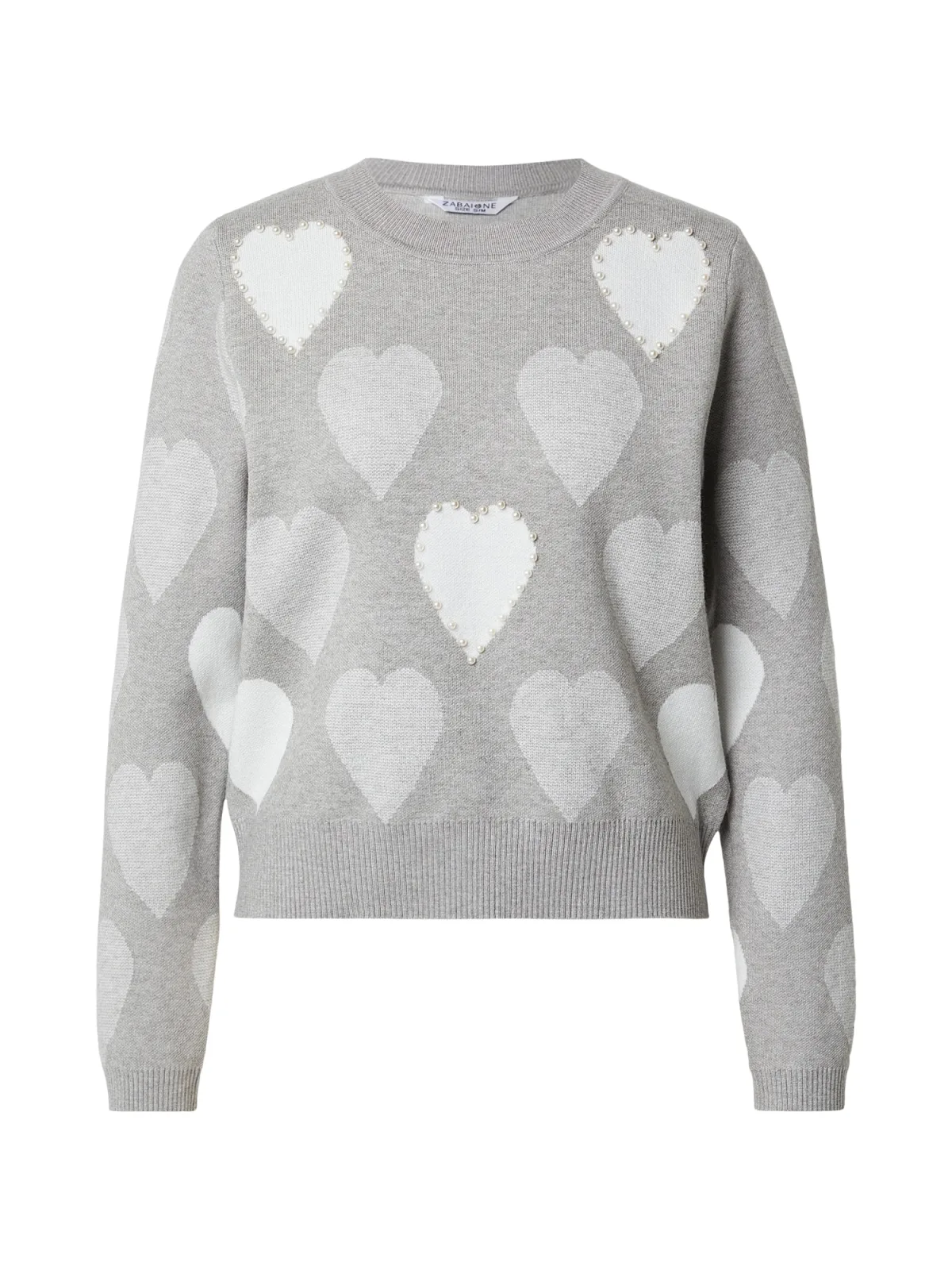 ZABAIONE Trui ‘He44art’ lichtgrijs / wit