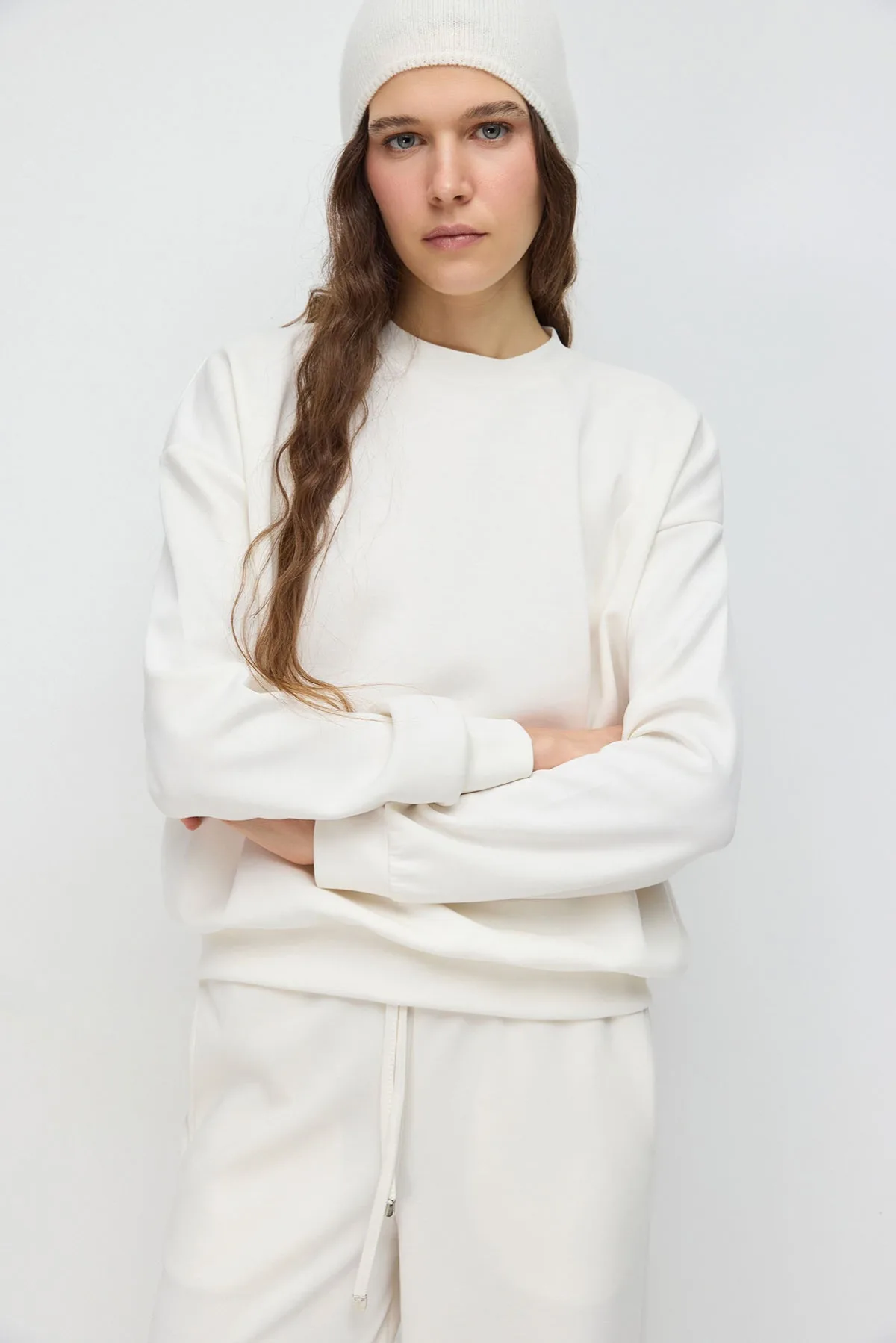 Design: Overcut schouder; Materiaal: Sweatstof; Halstype: Ronde hals; Motief: Effen; Extra's: Op staal naden; Pasvorm: Losse pasvorm; Armlengte: Lange mouw; Lengte: Normale lengte