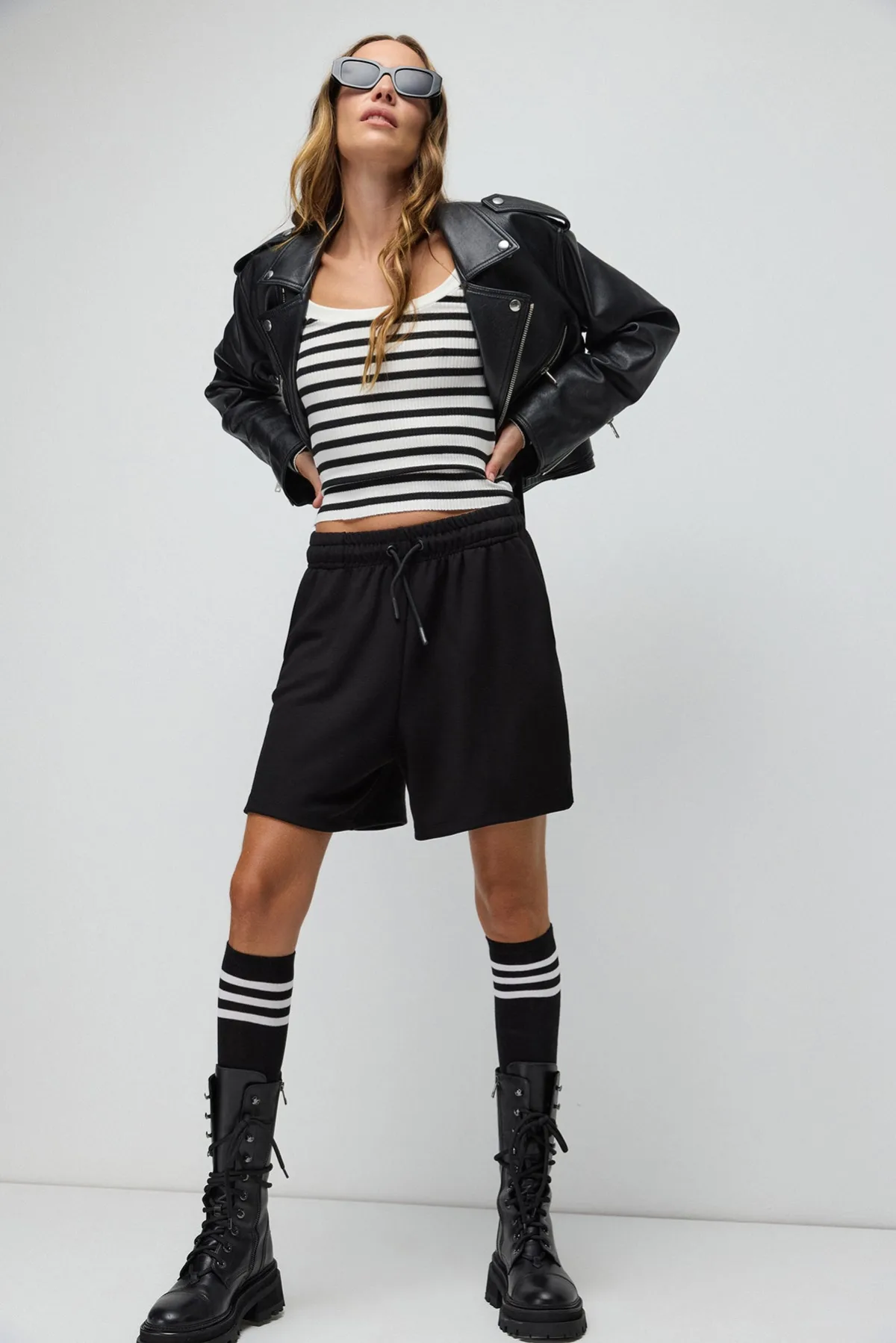 Design: Taille met trekkoord, Elastische taille/zoom; Materiaal: Sweatstof; Motief: Effen; Details: Gedrapeerd; Extra's: Op staal naden, Voelt zacht aan; Lengte: Kort/mini; Pasvorm: Loosefit; Taillehoogte: Mid waist