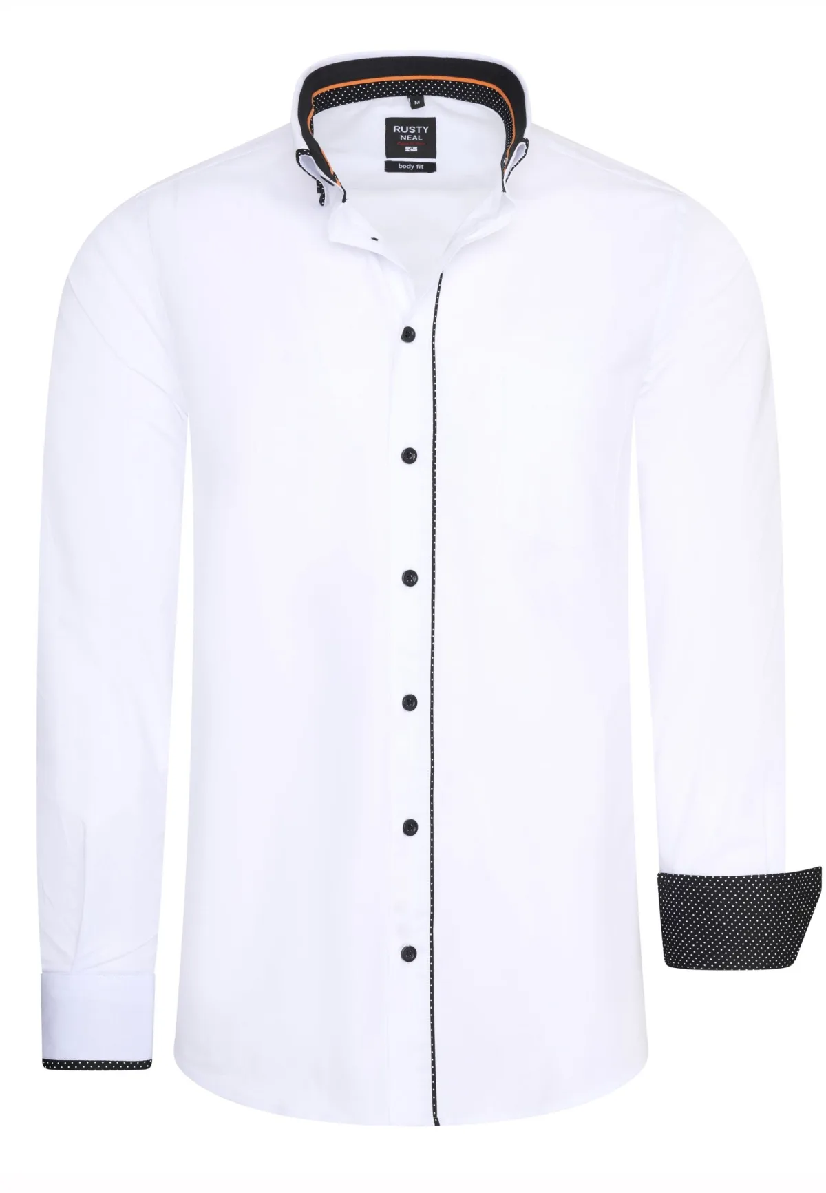 Rusty Neal heren overhemd Pasvorm: Body Fit Materiaal: 97% katoen, 3% lycra Gewicht: 250 g Land van herkomst: Turkije Kraagvorm: Kent kraag TEVREDENHEIDSGARANTIE: U kunt bij ons zonder risico kopen, wij accepteren retourzendingen zonder opgaaf van reden en storten uw geld binnen de kortst mogelijke termijn terug. Onze bedrijfsfilosofie is nog steeds: "De klant is koning". Ons doel is om te allen tijde de best mogelijke service te bieden, met het hoofdkantoor in Duitsland. PRODUCTIE: Als oprichter en fabrikant ontwerpen en produceren wij onze producten autonoom van A tot Z als familiebedrijf. Hierdoor kunnen wij kwaliteit en een optimale prijs-kwaliteitverhouding garanderen. Gefabriceerd onder eerlijke arbeidsomstandigheden met hoogwaardige materialen die zorgvuldig zijn verwerkt (geen chemische geur). Tijdloos design uit het land van herkomst: Turkije PASVORM: Dit shirt is gemaakt van een hoogwaardige en soepele katoenmix en staat garant voor een absoluut comfortabel gevoel met een feelgoodfactor. Ons model is 1,85 m lang, weegt ruim 80 kg en draagt maat M (medium). Aangepast aan de Europese markt, bieden wij dit shirt aan in de volgende pasvorm: Body Fit GELEGENHEID: Of het nu lente/zomer of herfst/winter is, dit shirt is altijd comfortabel om te dragen en is een allrounder. Dankzij de hoogwaardige materialen en afwerking kriebelt het niet. Het tijdloze en toch moderne design garandeert een stijlvolle verschijning, zowel op kantoor of tijdens zakelijke bijeenkomsten als casual in de middag of als een geweldig accent op feesten of andere evenementen. MACHINEWASBAAR: Dankzij de hoogwaardige verwerking van de materialen is er geen sprake van kleurverlies na het wassen en is krimpen van het shirt geen probleem meer! Kwaliteit die de tand des tijds doorstaat, zelfs na talloze wasbeurten!