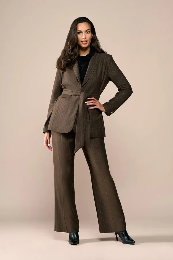 De Zaylee blazer van Mart Visser combineert tijdloze klasse met moderne verfijning. Uitgevoerd in een warme bruine kleur en voorzien van zilveren streepdetails, straalt deze blazer elegantie en subtiliteit uit. De soepele stretchstof zorgt voor draagcomfort en een mooie pasvorm, terwijl het rechte, losse silhouet een hedendaagse uitstraling biedt. Het jasje sluit met een enkele knoop bekleed met bijpassende stof, en is voorzien van paspelzakken en een afneembaar strikceintuur om de taille naar wens te accentueren. De blazer is licht getailleerd dankzij subtiele figuurnaden, en de rechte mouwen zijn verrijkt met een extra naad aan de achterzijde – een detail dat het ontwerp net dat beetje extra geeft. De verfijnde streepjes en elegante afwerking maken deze blazer tot een echte blikvanger in elke garderobe. Fashiontip: de Zaylee is er ook in grijs, ideaal voor een stijlvolle laagjeslook.