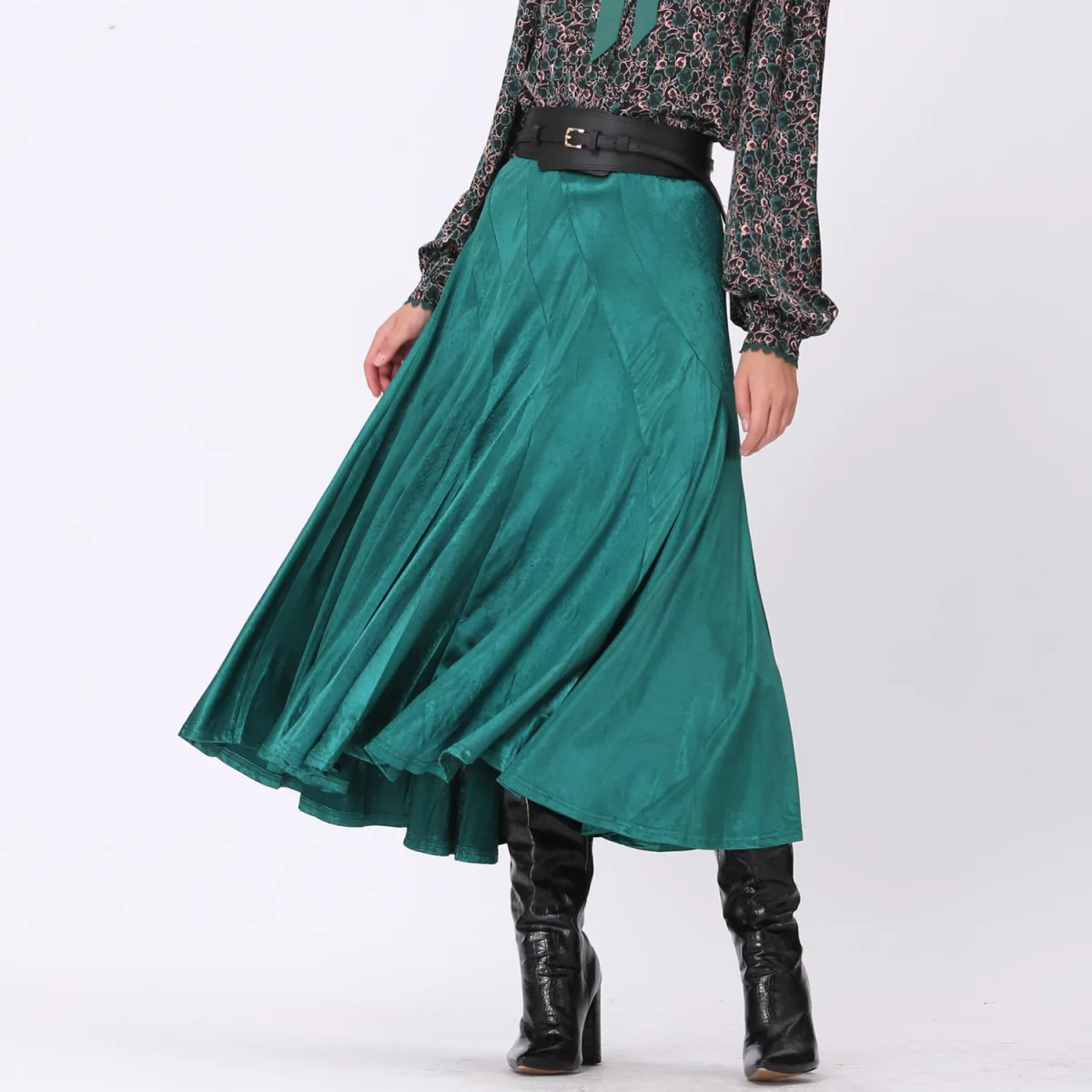 Zeer wijd uitlopende lange fluwelen rok Prijzen