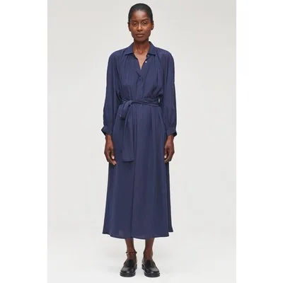 ZENGGI Technosilk Gathered Dress Ink Blue