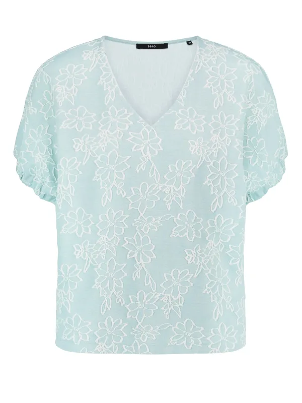 Materiaal: Viscose; Halstype: V-hals; Motief: Bloemenprint; Pasvorm: Aansluitende pasvorm; Armlengte: Halve mouw; Lengte: Normale lengte