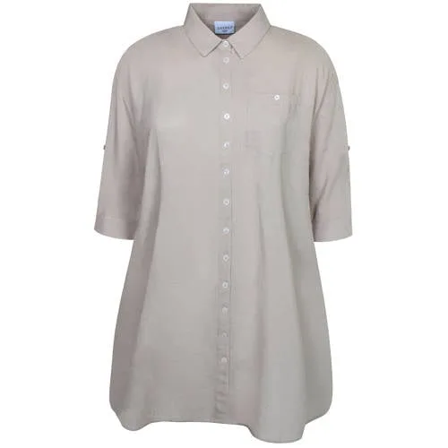 Deze beige dames blouse met lange mouwen van Zhenzi is een fijne basic voor dagen waarop je er verzorgd uit wilt zien zonder dat het ingewikkeld wordt. De effen kleur maakt combineren eenvoudig, terwijl de klassieke kraag en knoopsluiting zorgen voor een nette, tijdloze uitstraling. Door de rechte mouwen oogt het model rustig en elegant.Comfortabele stof met natuurlijke uitstraling Gemaakt van 50% viscose, 30% katoen en 20% linnen voor een soepele stof met een frisse, luchtige touch Effen beige kleur die makkelijk te combineren is met zowel lichte als donkere onderstukken Lange mouwen met recht model voor een rustige, gestroomlijnde look Klassieke kraag en volledige knoopsluiting aan de voorzijde voor een verzorgde uitstraling Ontworpen zonder zakken, waardoor de blouse mooi glad langs het lichaam valt Onderdeel van een grote maten assortiment, met aandacht voor pasvorm en comfortIdeaal voor laagjes in het voorjaarDeze blouse past goed bij het lenteseizoen. Draag de blouse los over een smalle broek voor een ontspannen look of ingestopt in een rok voor een meer geklede outfit. De lichte, natuurlijke stof voelt prettig aan op de huid en is geschikt voor zowel werk als vrije tijd.Zhenzi: stijl met aandacht voor pasvormZhenzi richt zich op mode in grotere maten, met aandacht voor comfortabele pasvormen en draagbare modellen. De ontwerpen sluiten aan bij een vrouwelijke stijl, met items die eenvoudig te combineren zijn in je dagelijkse garderobe.Een toegankelijke blouse die je kledingkast het hele seizoen door net dat beetje extra geeft.