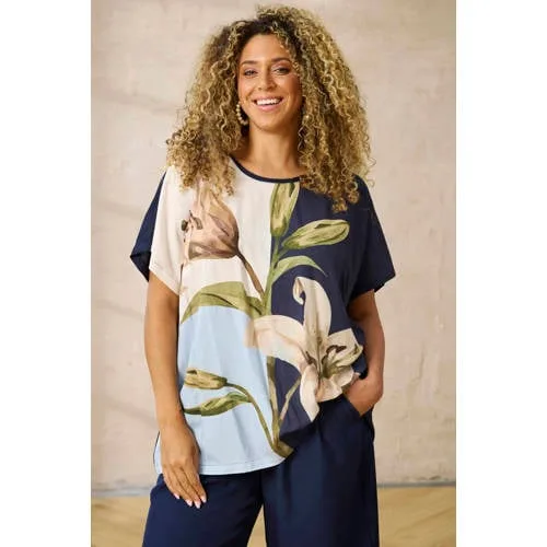Zhenzi gebloemde blousetop donkerblauw Prijzen