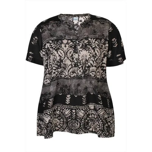 Deze zwarte Zhenzi tuniek brengt comfort en stijl samen in een luchtige top voor warme dagen. De tuniek is gemaakt van 100 procent viscose, een soepele stof die zacht langs de huid valt en prettig met je meebeweegt. De all over print geeft een speels effect, terwijl de button down kraag zorgt voor een verzorgde uitstraling. Geschikt als je graag iets losser en langer draagt en op zoek bent naar een passend model voor grote maten.Details die het verschil maken Gemaakt van 100 procent viscose, voelt licht en soepel aan op de huid All over print in zwart voor een rustige maar levendige look Korte, rechte mouwen voor comfortabele bewegingsvrijheid Button down kraag voor een nette, vrouwelijke uitstraling Geen sluiting, je trekt de tuniek eenvoudig over het hoofd aan Speciaal ontworpen voor grote maten met een relaxed, losvallend modelVeelzijdig voor lente en zomerdagenDeze tuniek past goed in een garderobe voor het voorjaar. Draag de top op een smalle broek of comfortabele jeans voor een uitgebalanceerde look. De soepele stof en het luchtige model maken het een praktische keuze voor zowel thuis als op een werkdag.Femininiteit van ZhenziZhenzi richt zich op mode in grote maten met aandacht voor pasvorm en draaggemak. De ontwerpen uit de Feminine collectie combineren zachte lijnen met praktische details, zodat je kunt kiezen voor kleding die prettig zit en verzorgd oogt.Een toegankelijke tuniek die je garderobe aanvult met een comfortabele, vrouwelijke basis.