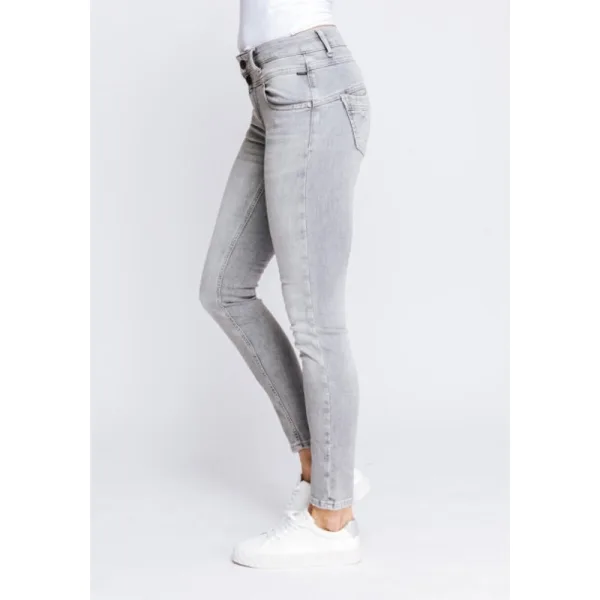 Stoere jeans van Zhrill. Model de Kela. Mooie licht grijze kleur jeans met een washing. Mooi aansluitende broek. Dit artikel wordt gekenmerkt door de volgende kenmerken: blinde ritssluiting, open dubbele knoop op de tailleband, mooie blauw/grijze look, normale taille. Makkelijk te combineren. 89% katoen 8% polyester 3% elastaan artnr: D123665