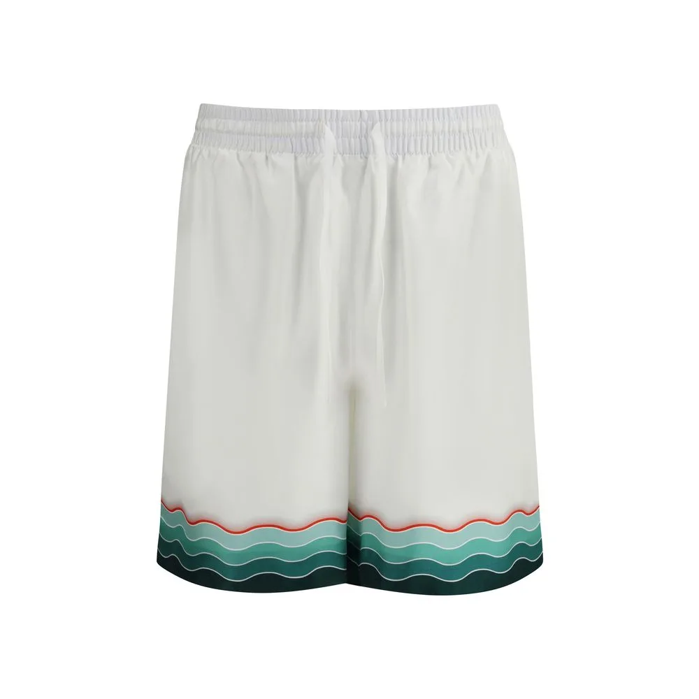 Deze Casablanca zijde shorts hebben een ontspannen pasvorm en een onderscheidend golvend groen en rood patroon langs de zoom, wat een vleugje luxe toevoegt aan je casual garderobe. Gemaakt in Italië van 100% zijde.