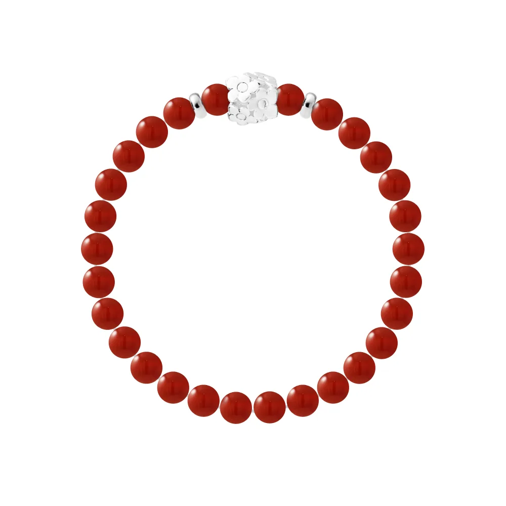 Armband Pure Gem | RODE CORNALINE | Ferrules 'FLOWER POWER' 'S' Sterling Zilver 925 Duizendsten | HR® elastisch - Hoge Weerstand | Gemaakt in onze Franse Werkplaats | Geleverd met onze prestigieuze doos en een garantie- en echtheidscertificaat