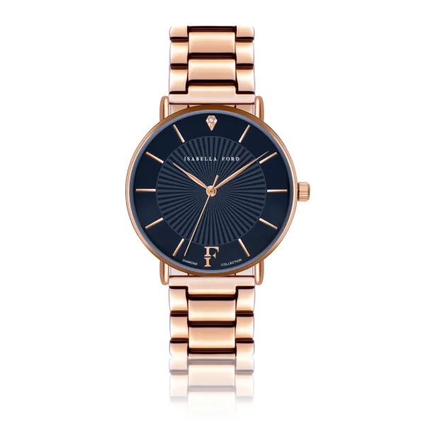 Isabella Ford presenteert een van de drie echte diamanten dag- en nachtklokken, elk met een onweerstaanbare look. Met een prachtig geraffineerd ontwerp is Florence gewijd aan slimme vrouwen die houden van de eenvoud van verfijnde, tijdloze luxe.Modelnaam: Florence Rose Gold LinkKastmaat mm: 36Kastmateriaal: MetaalsamenstellingKleur kast: Goud rose Kleur kast: Ion-plating (IP)Armbandmaat mm: 18×18Materiaal band: Roestvrij staalKleur band: Goud rose Kleur wijzerplaat: Marine blauwGlas: Gehard mineraal kristalDiamant details: Cut: Single; Clarity: I-3; Kleur: Upper crystal;Case back: Roestvrij staalWaterbestendigheid: 3 ATM