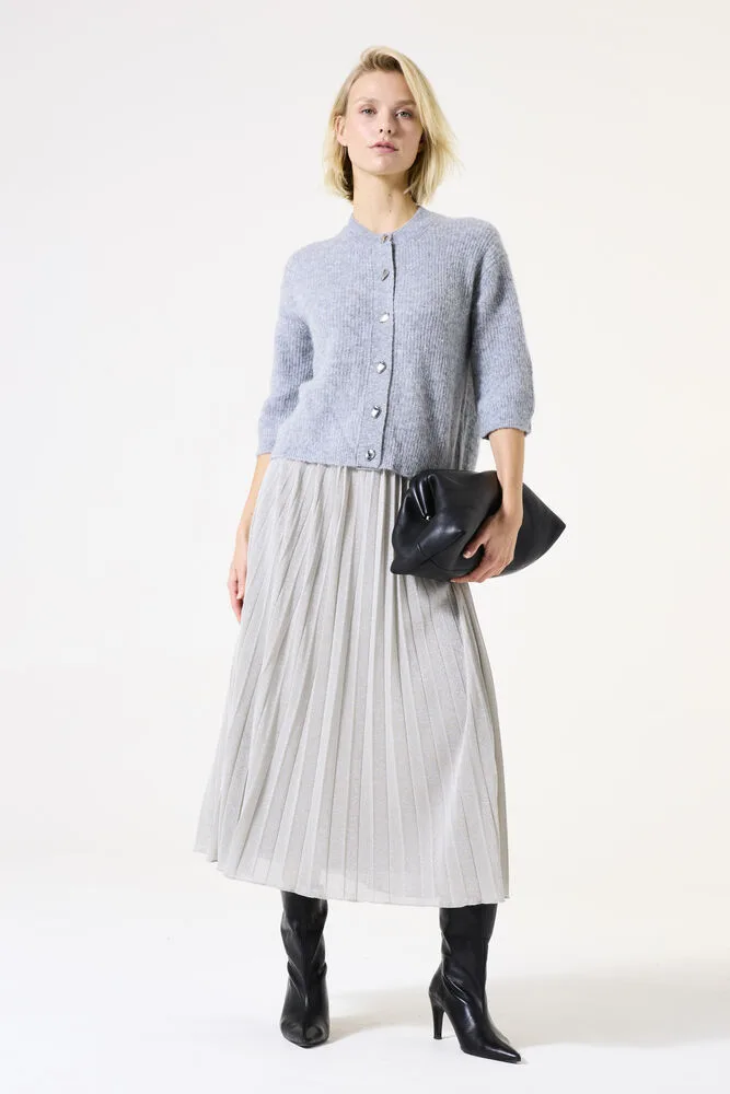 Elegante plissé rok met een hoge taille. Deze rok heeft een elastische tailleband en een regular fit, waardoor hij comfortabel en stijlvol is. Dit item is gemaakt van 68% polyamide en 32% metallic garen, wat zorgt voor een luxe uitstraling en een mooie glans.