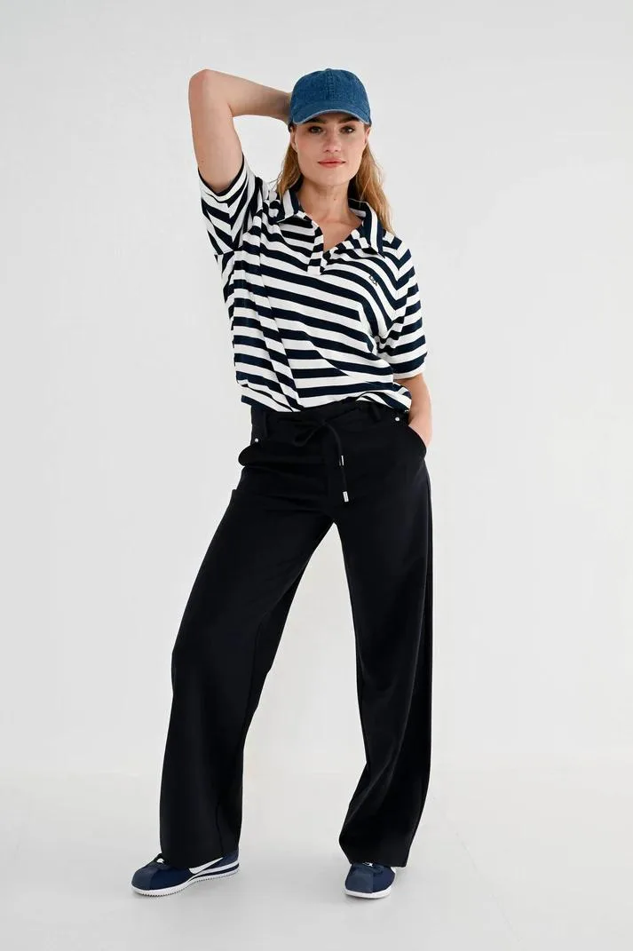 Zoek je een comfortabele broek die netjes oogt, maar toch relaxed voelt, dan is deze donkerblauwe dames broek PAJLA van Maicazz & Zizo een fijne basis voor jouw garderobe. De lange, losse pijpen vallen soepel langs het been en de diepe donkerblauwe kleur laat zich makkelijk combineren met je favoriete tops en blouses.Comfort met een verzorgde look Losse pasvorm met lange pijpen voor een ontspannen silhouet Hoge taille met elastische tailleband en koord voor een aansluitende, maar flexibele fit Effen donkerblauwe kleur die goed combineert met zowel lichte als donkere tinten Voorzien van zakken voor en achter, plus sierzakken voor een verzorgde uitstraling Gemaakt met katoen, lyocell en een beetje elastaan voor een zachte touch en lichte stretchIdeaal voor doordeweeks en vrije dagenDeze broek past goed bij de feminiene stijlen van het voorjaar. Combineer met een luchtige top en sneakers voor een casual dag, of met een mooie blouse en loafers voor een meer geklede look. De hoge taille en het koord geven je de mogelijkheid de fit naar wens aan te trekken.Maicazz & Zizo: eigentijdse damesmodeMaicazz & Zizo staat voor eigentijdse damesmode met aandacht voor pasvorm en draaggemak. De collecties zijn afgestemd op het dagelijks leven, met items die je makkelijk combineert en vaak uit de kast pakt. Zo voeg je met broek PAJLA een veelzijdig kledingstuk toe waar je langdurig plezier van hebt.Een moderne, donkerblauwe basisbroek die zowel comfortabel als verzorgd oogt.