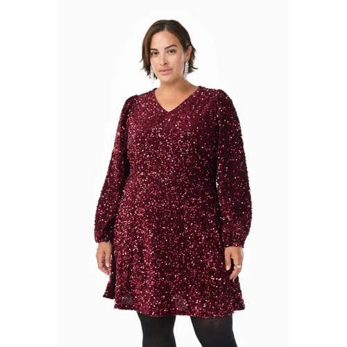 Zizzi A-lijn jurk met pailletten donkerrood Prijzen
