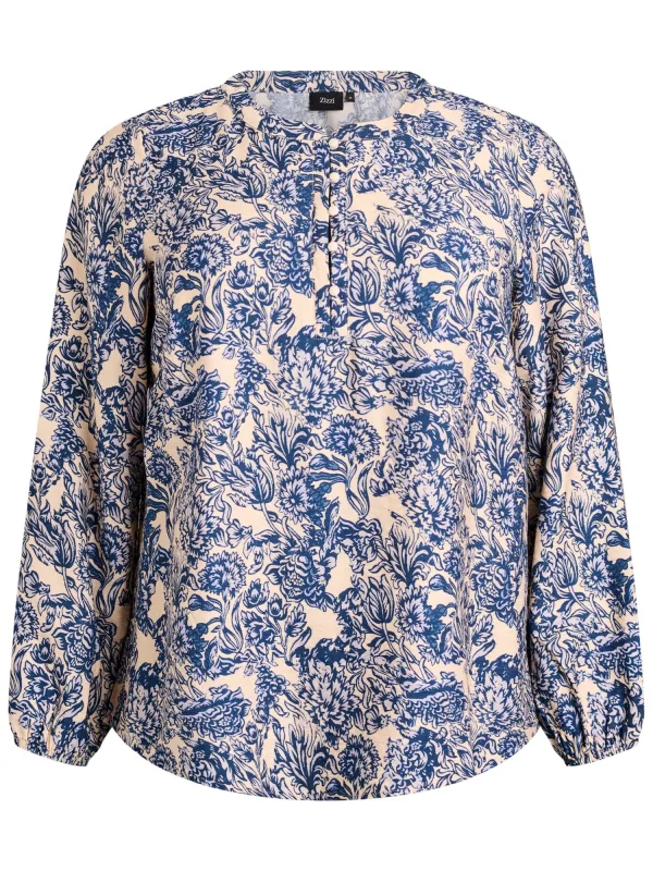 Zizzi Blouse ‘Caava’ beige / blauw Prijzen