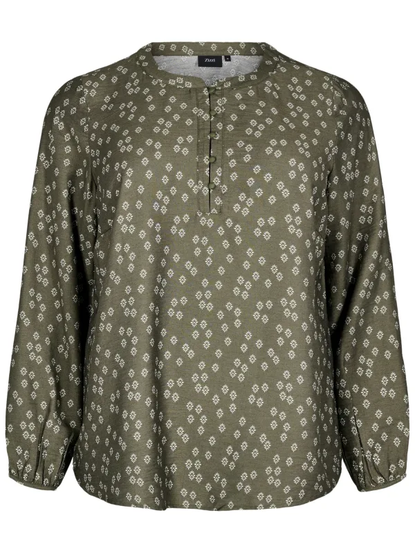 Zizzi Blouse ‘Caava’ donkergroen / wit