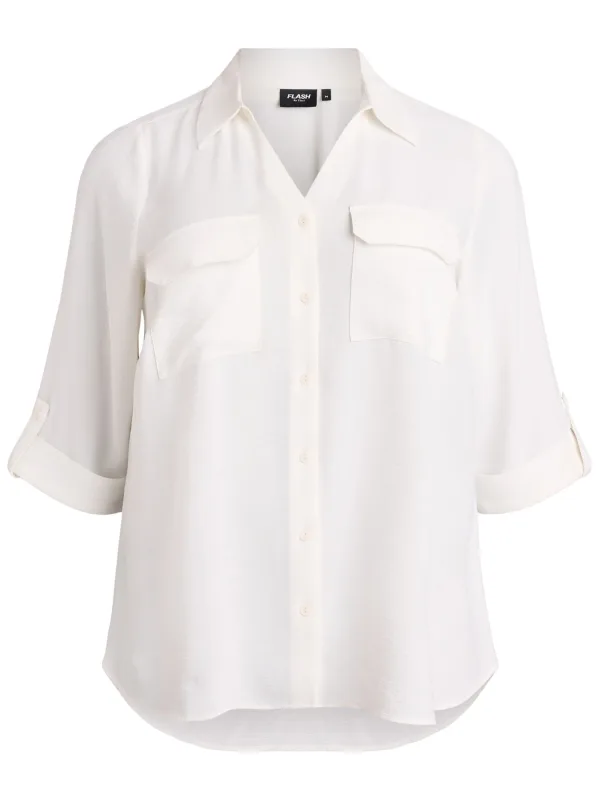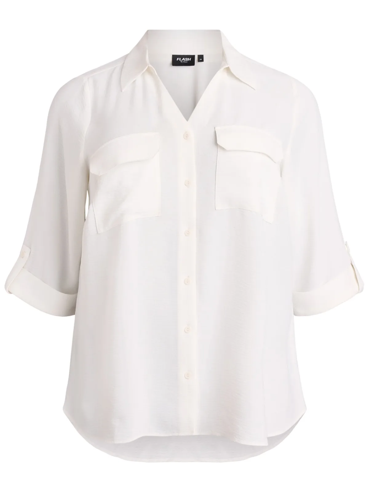 Blouse type: Klassieke blouse; Design: Gevoerde zoom/rand, Turn-down kraag, Borstzak, Roll-up mouwen; Type sluiting: Knoopsluiting; Materiaal: Gerecycled materiaal; Motief: Effen; Extra's: Op staal naden, Voelt zacht aan; Pasvorm: Normale pasvorm; Armlengte: Driekwart mouw; Lengte: Normale lengte