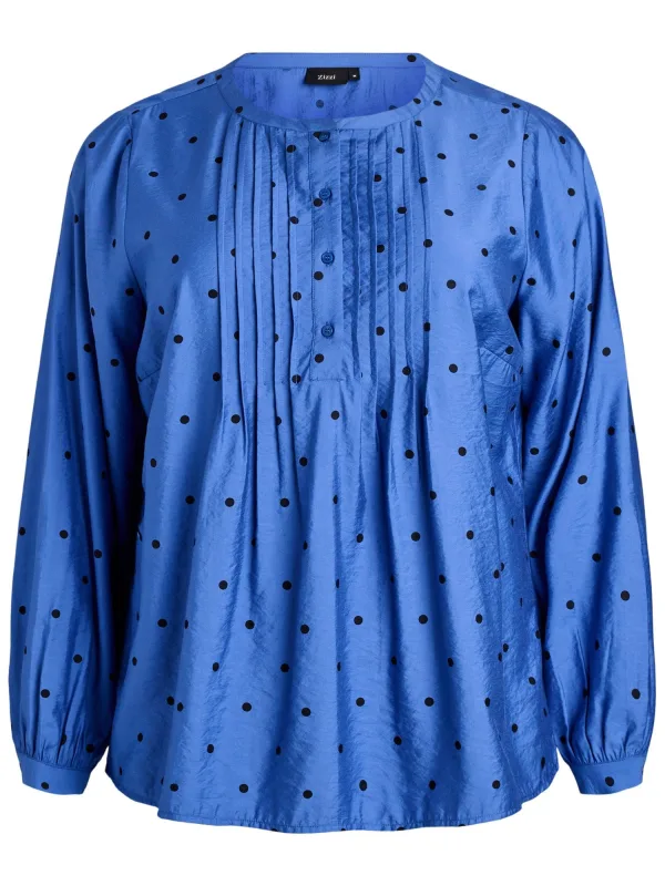 Blouse type: Wijde blouse; Design: 1-knoops manchetten, Gevoerde zoom/rand, Knop placket, Knop sluiting; Type sluiting: Knoopsluiting; Materiaal: Viscose; Motief: Gestippeld; Kraag: Zonder kraag; Details: Plooien, Gedrapeerd; Extra's: All-over patroon, Label patch/label flag; Pasvorm: Losse pasvorm; Armlengte: Lange mouw; Lengte: Normale lengte