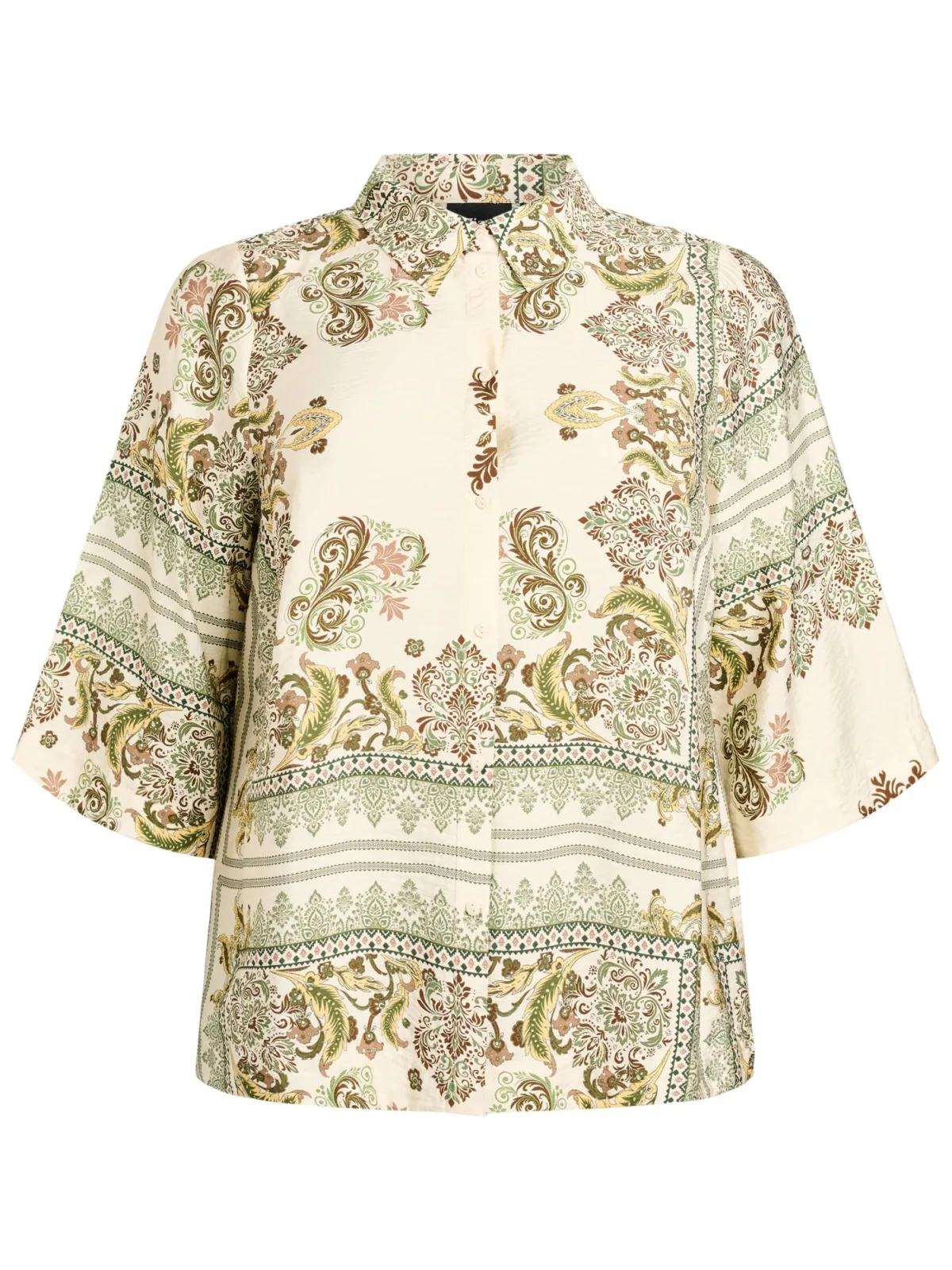 Zizzi Blouse ‘Mestea’ beige / bruin / pastelgroen