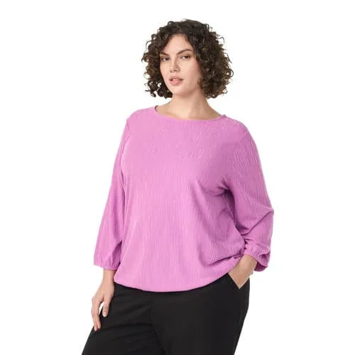 Deze top van Zizzi heeft driekwart ballonmouwen en een ronde hals. De top is gemaakt van polyester. Met de textuur valt de stof op en draag je deze top makkelijk bij verschillende outfits.