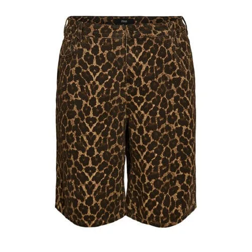 Zizzi denim wide leg regular waist short met panterprint beige Prijzen