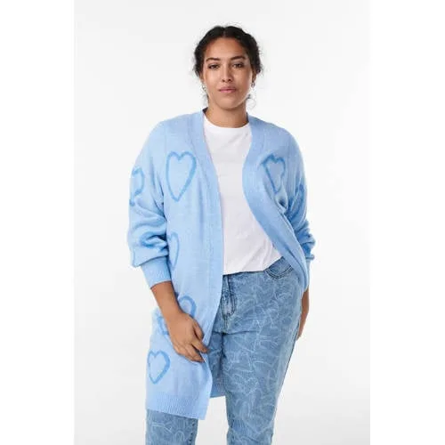 Zizzi gebreid vest met hartjes blauw Prijzen