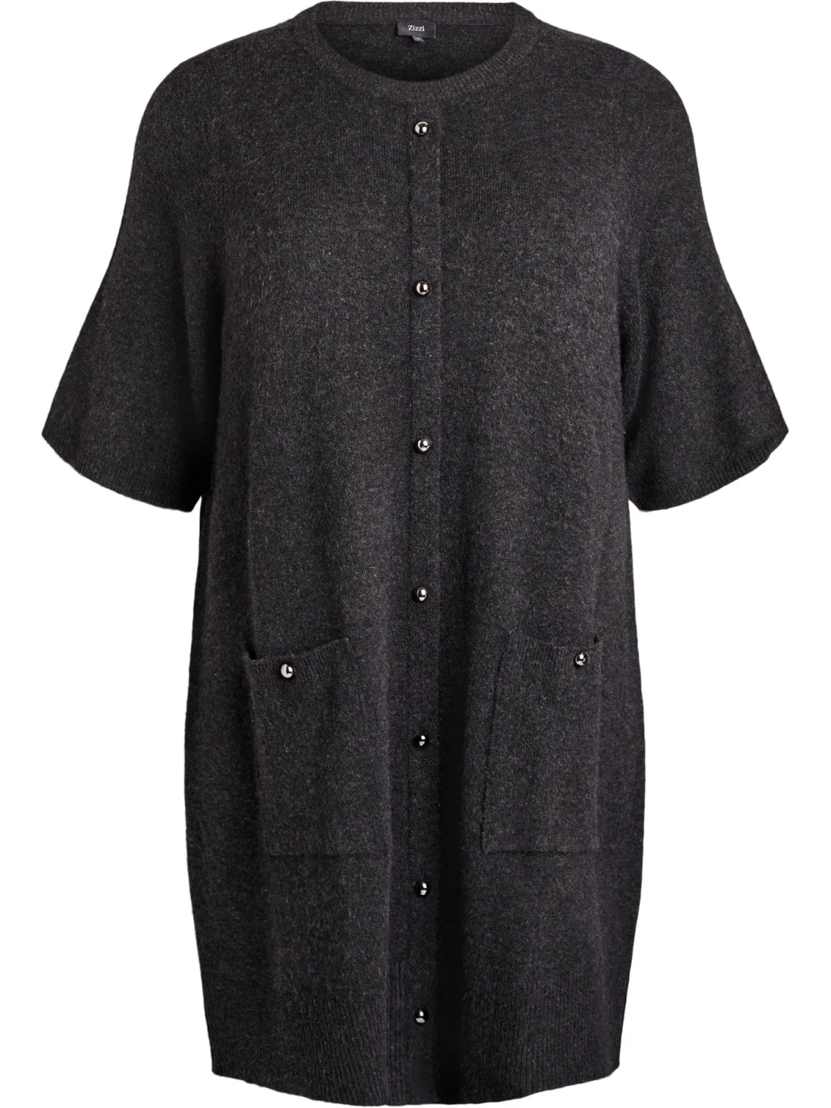 Design: Geribbelde kraag, Geribd ceintuurtje, Opgezette zakken; Type sluiting: Knoopsluiting; Materiaal: Gerecycled materiaal; Halstype: Ronde hals; Motief: Mélange; Extra's: Parelmoer knoppen, Voelt zacht aan; Lengte: Knielengte; Snit: Recht; Pasvorm: Losse pasvorm; Armlengte: Halve mouw