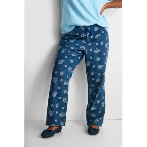 Zizzi highwaist gebloemde wide leg jeans medium blue denim