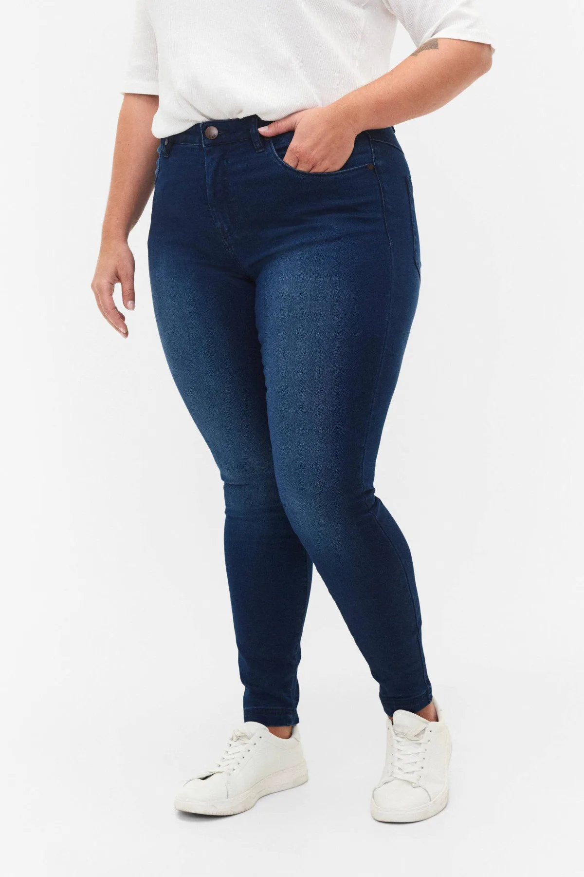 Zizzi high waist slim fit jeans AMY dark blue denim Prijzen