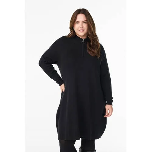 Zizzi jurk met col zwart Prijzen