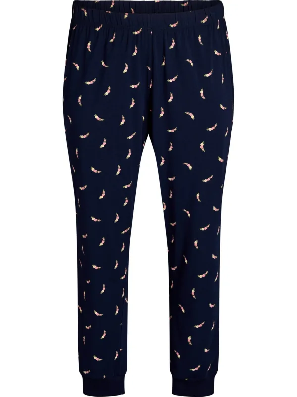 Specificaties: Zizzi Pyjamabroek ‘MHanny’ navy / geel / rosé