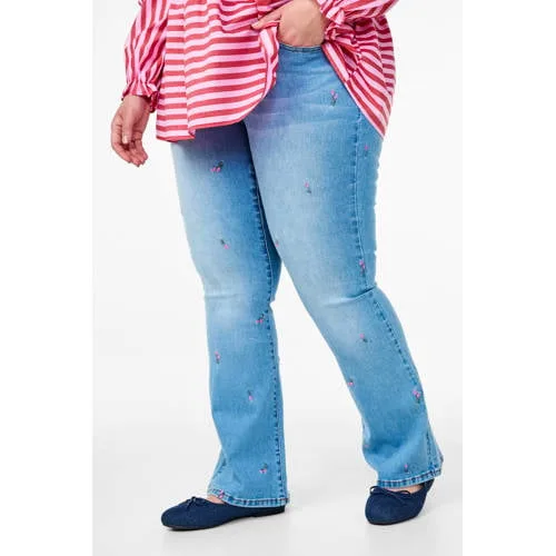 Met deze damesjeans van Zizzi krijg je comfortabele stretchdenim in light blue. De bootcut jeans heeft een regular waist en een rits- en knoopsluiting. Voorzien van borduursels en klassiek 5-pocket ontwerp, perfect voor elke gelegenheid.