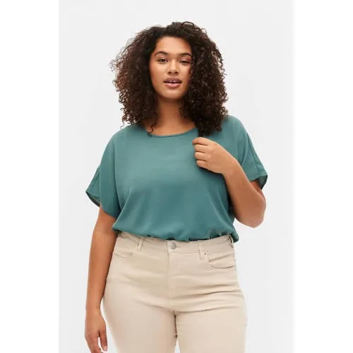 Dit T-shirt voor dames van Zizzi is gemaakt van polyester. Het model heeft een ronde hals en korte mouwen.