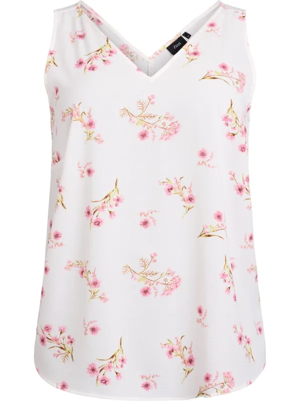 Design: Gevoerde zoom/rand, Rugnaad; Materiaal: Gerecycled materiaal; Halstype: V-hals; Motief: Bloemenprint; Soort bandjes: Brede bandjes; Extra's: All-over patroon; Pasvorm: Normale pasvorm; Armlengte: Mouwloos; Lengte: Normale lengte