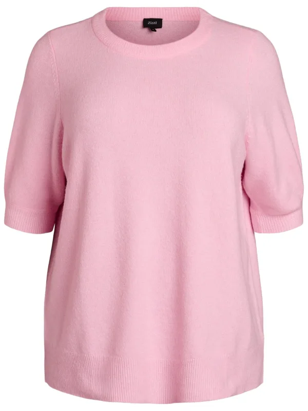 Deze Zizzi knitted blouse is een basic voor elke dag, speciaal ontworpen voor grote maten. De top heeft een vrouwelijke ronde hals en half lange mouwen die net tot over de bovenarm vallen. Door het soepele materiaal met lichte stretch sluit de blouse mooi aan zonder te strak te zitten. De effen kleur maakt het een item dat je makkelijk combineert met je favoriete broeken en rokken.Details die je elke dag wilt dragen Comfortabele top uit de 'Daily' collectie, geschikt voor alledaags gebruik Half lange mouwen voor subtiele bedekking van de bovenarmen Ronde hals die mooi rondom de halslijn valt Effen ontwerp, eenvoudig te combineren met zowel prints als basic items Zachte, soepele stof met 3% elastaan voor lichte stretch Geschikt voor grote maten, met aandacht voor comfort en bewegingsvrijheidMakkelijk te stylen in jouw garderobeDraag deze knitted blouse op een rechte jeans voor een casual look of combineer met een nette broek voor een meer formele outfit. De top is ook geschikt onder een blazer of vest, omdat de half lange mouwen niet opkruipen en de stof mooi glad onder andere lagen blijft.Zizzi, specialist in grote matenZizzi richt zich volledig op mode in grote maten, met modellen die zijn afgestemd op rondingen. De pasvormen worden ontwikkeld met aandacht voor comfort en een moderne uitstraling. Zo kies je voor kleding die is ontworpen om goed aan te sluiten bij jouw stijl.Een toegankelijke basic voor zowel werk als vrije tijd.