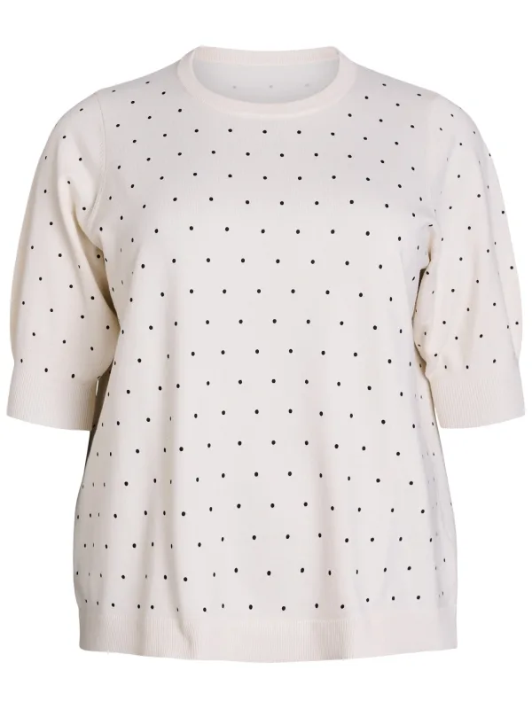 Design: Gevoerde zoom/rand, Pofmouwen, Geribd ceintuurtje; Type sluiting: Slip; Materiaal: Knitwear; Halstype: Ronde hals; Motief: Gestippeld; Details: Borduursels; Extra's: All-over patroon, Op staal naden; Pasvorm: Normale pasvorm; Armlengte: Halve mouw; Lengte: Normale lengte
