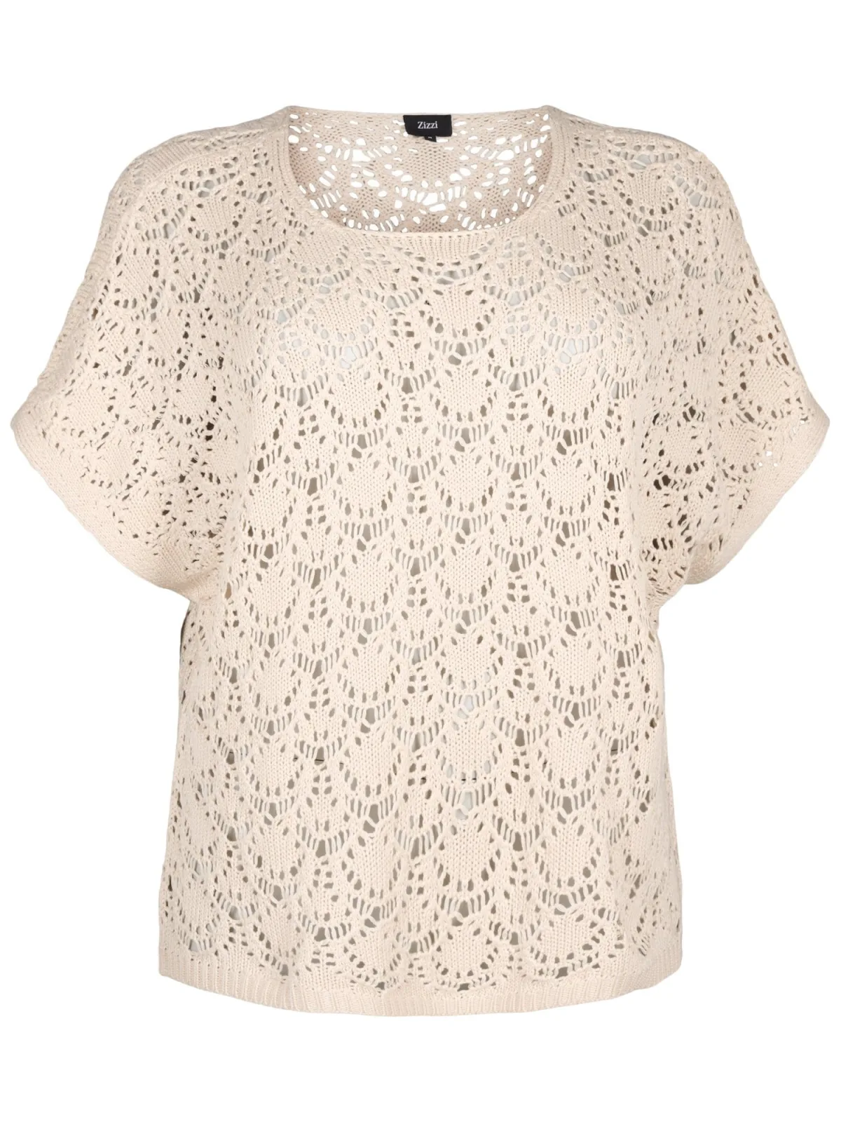 Deze top van Zizzi heeft een ronde hals en korte mouwen. Gemaakt van katoen en acryl. Het open breisel geeft een speelse uitstraling. Ideaal voor een casual look, zonder zakken of sluiting. Perfect voor dames die houden van comfort.