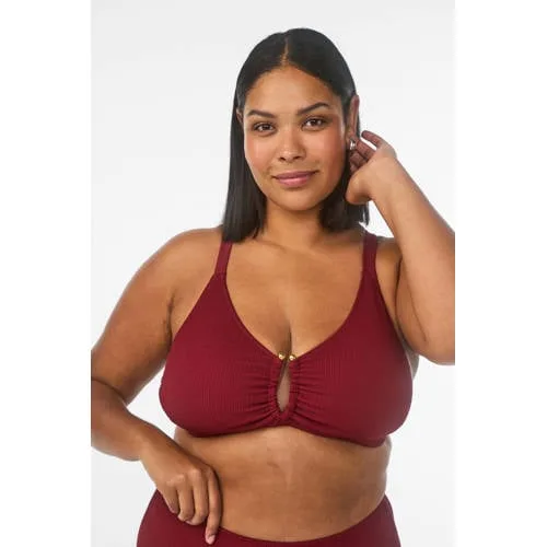Zizzi voorgevormde bikinitop SLINO met ribstructuur donkerrood